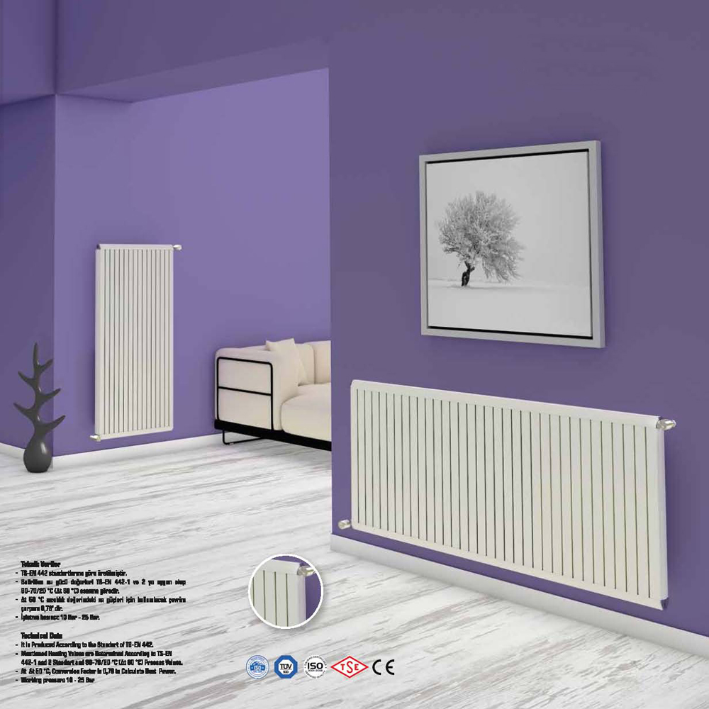 Radiatherm her tür tesisat bağlantı tarzına uygundur. Ayrıca yapısı gereği talebe göre HB bağlantı tipi uygulanabilir. HB bağlantı aynı yönden alttan giriş ve çıkış olup giriş çıkış arası mesafe 50 mm’dir. Ayrıca termostatik vana entegre edilmiş VHB bağlantılı kompakt model ve termostatik vana entegreli VAGAC bağlantılı kompakt model uygulamasına müsaittir. Vana payı, alttan giriş-alttan çıkış veya üstten girş-karşıt uç alttan çıkış bağlantılarda, toplamda (45X2) 90 mmdir.Aynı taraflı giriş için vana payı 45 mm dir. Bu tip bağlantılarda botu eksen ölçeleri için radyatör uzunluğuna vana paylarını ilave etmek gerekir.HB tip bağlantılarda giriş çıkış eksen araları 50 mm’dir. Radyatör ucu ve ilk bağlantı ekseni arası 40 mm’dir.